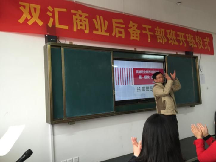 在開班儀式上,劉厚鈞主任宣布開班儀式正式開始。雙匯班全體成員高唱主題歌《超越夢想》,并以團隊為單位進行團隊展示。隨后,雙匯商業公司辦公室主任楊光對開班表示祝賀。程晉國副院長代表學院就本次校企合作的重要意義和對學員的要求做了精彩講話。教師代表王靜、學生代表孔敬敬、張亞新也分別發言。兩位學生代表表達了全班同學對于進入雙匯班的興奮與自豪之情,同時也告訴在場的各位老師同學,大家已準備好用實際行動來證明自我、砥礪自我、不斷進步,給雙匯班精彩的詮釋。儀式結束后,將由經管系講師團隊張曉麗、丁超君、安樂、李雁函、王靜、李娟為全體同學進行為期一周的高端職業素養特別培訓。