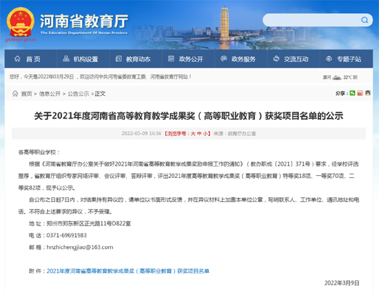 2022/03/10王含老師榮獲2021年度河南省高等教育教學成果一等獎