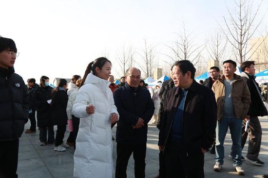 雙選會現(xiàn)場,學校領導與用人單位進行面對面交流,深入了解企業(yè)用人需求、人才市場動向,征詢用人單位對學校人才培養(yǎng)方面的意見建議。同時,強調(diào)要進一步加強政校、校地、校企合作,為畢業(yè)生提供全方位就業(yè)指導服務,推動更多畢業(yè)生盡早就業(yè)、順利就業(yè)。